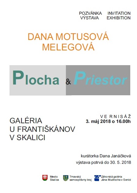Srdečne Vás pozývame na vernisáž Dany Motusovej Melegovej "Plocha & Priestor", ktorá sa uskutoční dňa 03.05.2018 o 16:00 hod v Galérii u Františkánov v Skalici